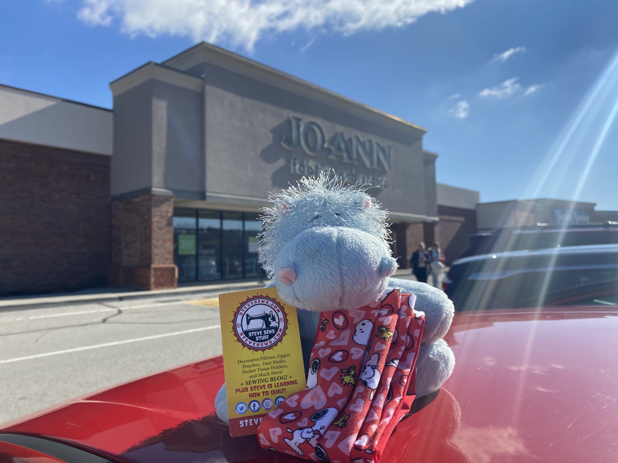 When we go out and about and shop for fabric and supplies they stay in the car with a business card and promote Steve Sews Stuff. (Some we’re around in the prior name, SteveZ MaskZ.)
