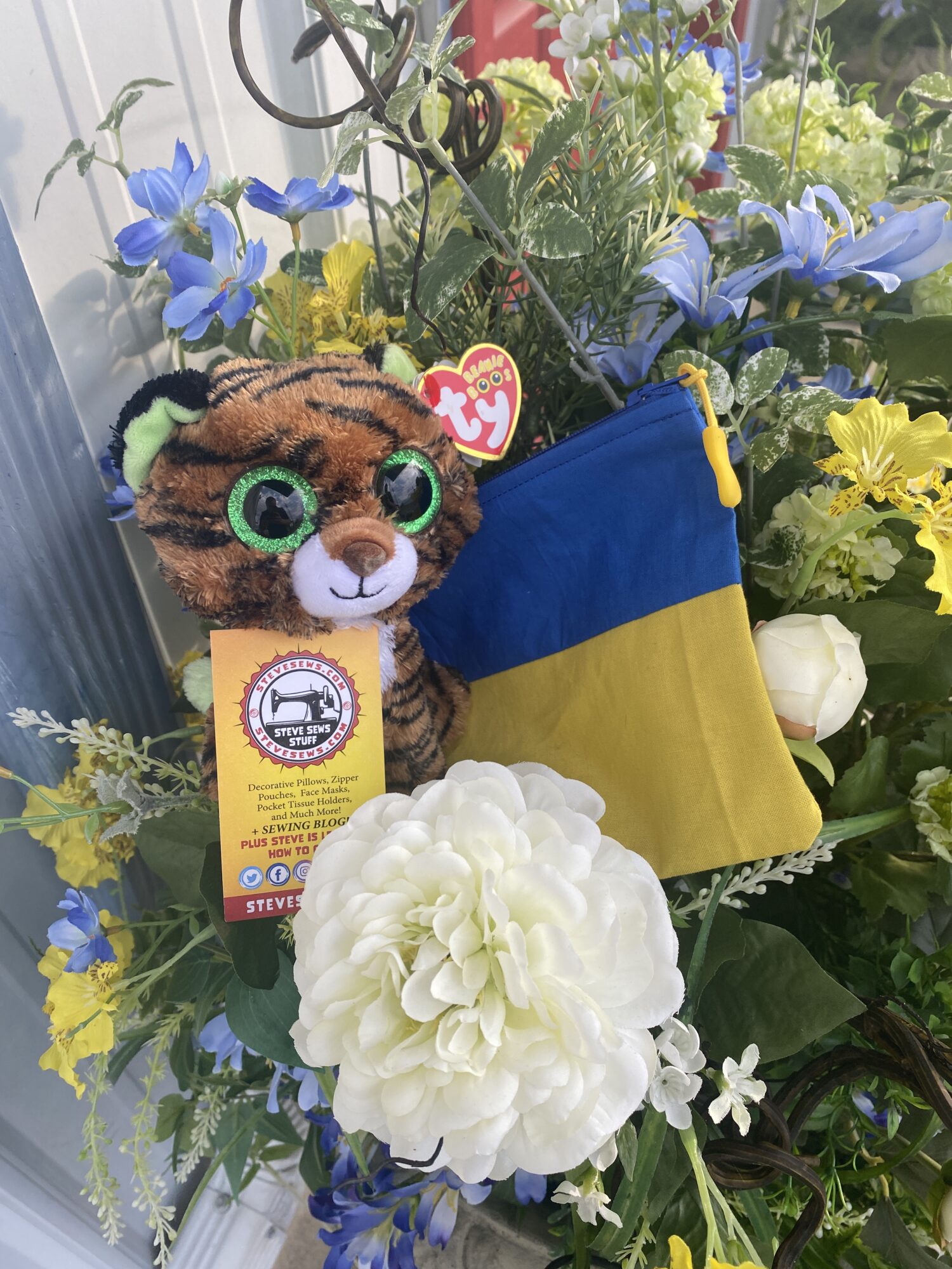 Meet Tiggy! Tiggy is a visual merchandiser. He is showing off the Blue & Yellow Zipper Pouch. Tiggy shares a birthday with Heather, Steve’s wife. He is a Ty Beanie Boos.