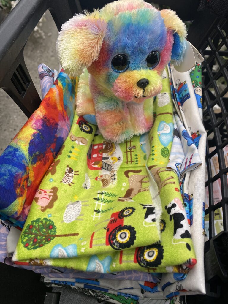 Meet Max the Dog, a World Autism Awareness Day Ty Beanie Baby, he jumped onto Steve’s shopping cart while purchasing fabric for future orders and products. He will be our Technical Writer.